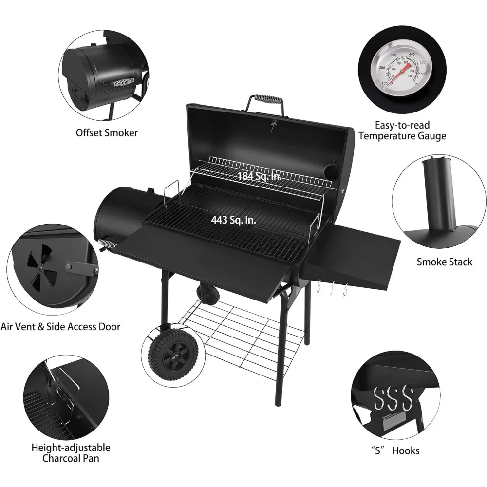 - Вкусные ароматы дыма: смещение курильщика прочно прикреплен к грилю, чтобы обеспечить хорошую циркуляцию тепла и дыма. Легко открыть боковую дверь, чтобы добавить уголь и удалить пепел; Воздушный вентиляционный вентилятор Стоукс огня мгновенно.